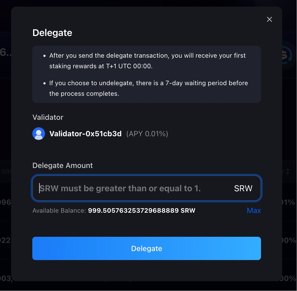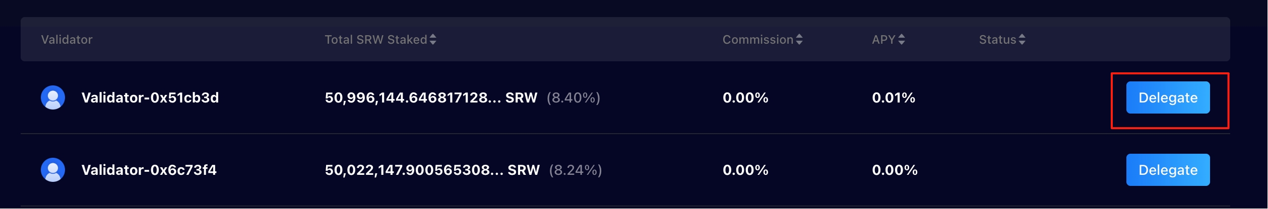 Leverage the SRW staking dApp for streamlined management of your stakes. This guide provides a step-by-step walkthrough for using the dApp on both SimpleChain2.0 testnet and mainnet.