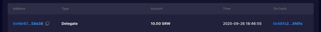 After confirming the delegation, your connected wallet will prompt you to sign the transaction. Successful transactions will be visible in the